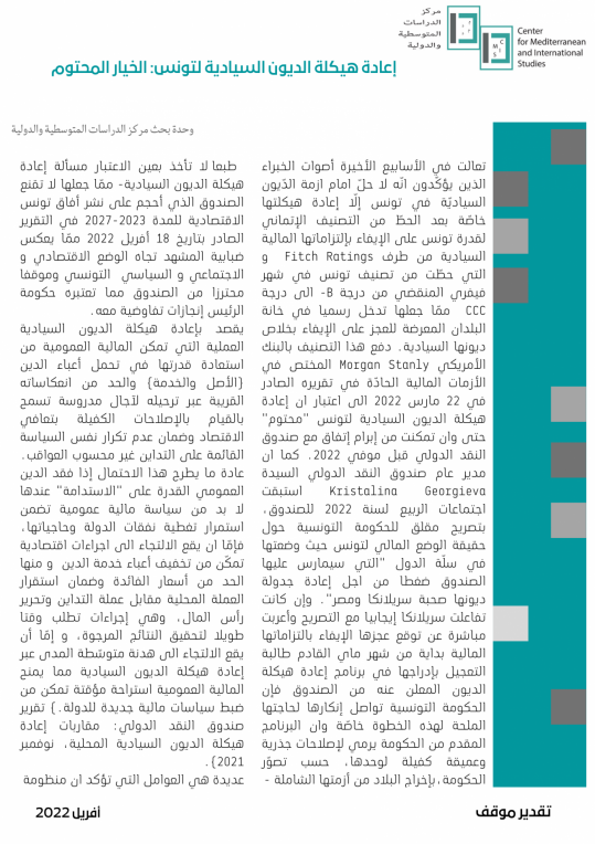 إعادة هيكلة الديون السيادية لتونس: الخيار المحتوم (150.68 Ko)