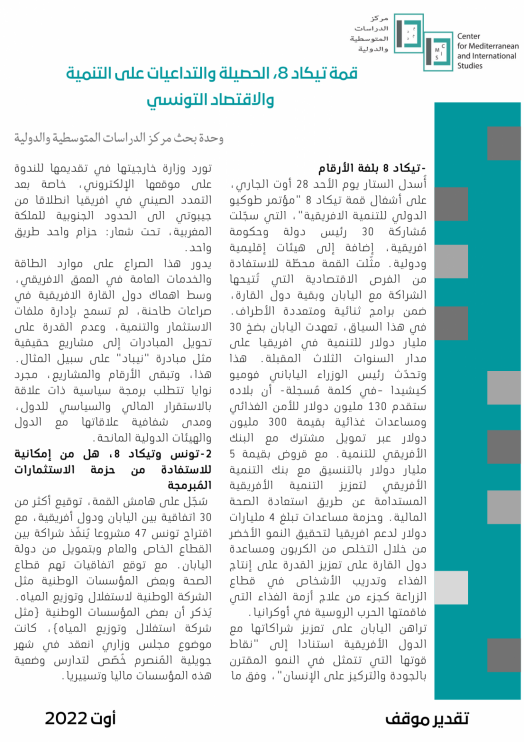 قمة تيكاد 8، الحصيلة والتداعيات على التنمية والاقتصاد التونسي (129.77 Ko)