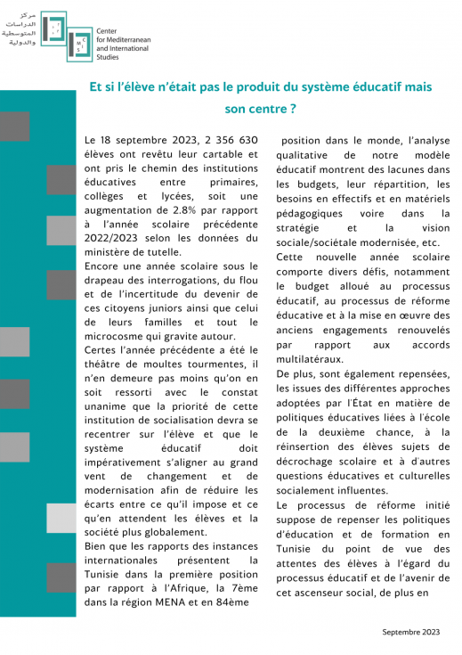 الاستشارة الوطنية حول اصلاح نظام التربية والتعليم في تونس