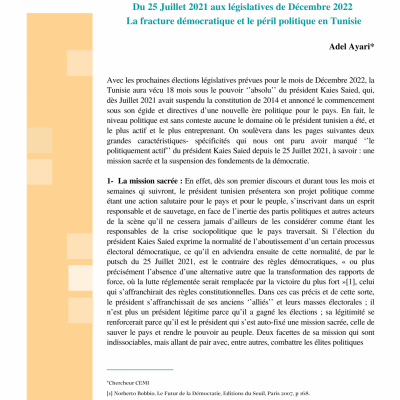 Du 25 juillet 2021 aux legislatives de decembre 2022 la fracture democratique et le peril politique en tunisie (152.16 Ko)